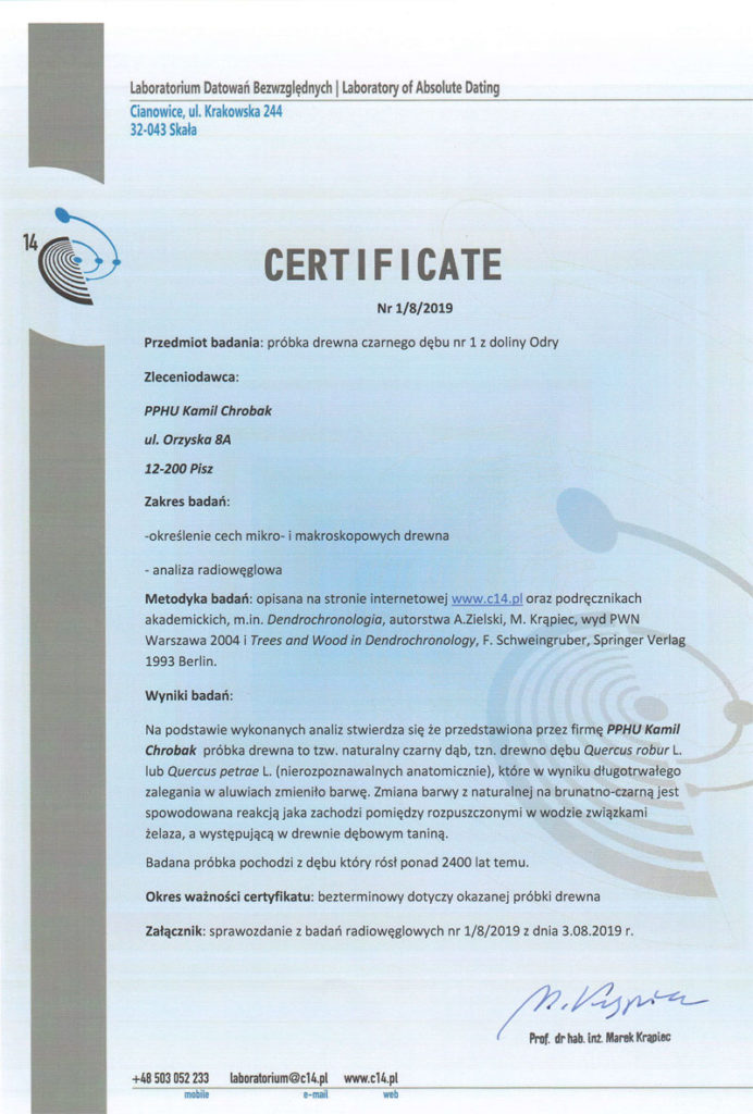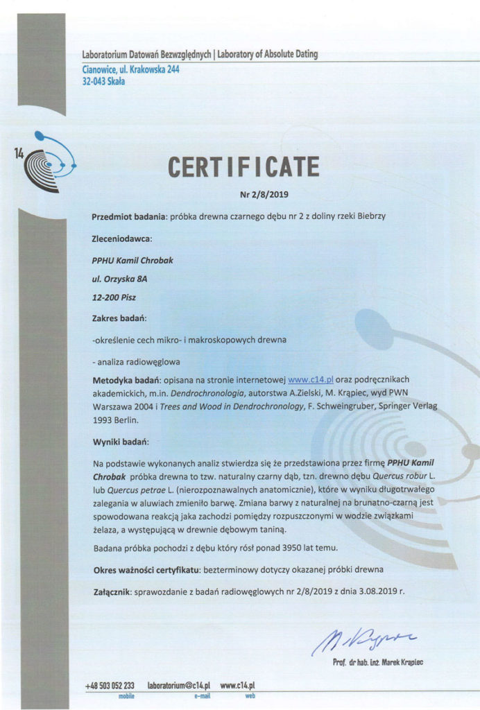 Dębowe drewno zawiera dużą porcję garbników, które reagują z solami żelaza zawartymi w ziemi i w wodzie, stąd dębina kopalna powoli się mineralizuje i zmienia barwę. Kilkanaście procent czarnego dębu stanowią skamieliny, stąd jest on bardziej wytrzymały niż typowe gatunki dębiny. Najwięcej czarnego dębu znajduje się w województwach lubuskim oraz podkarpackim – często spore kawałki tego surowca wyciągane są z rzek. Czarny dąb, który służy do produkcji naszych niestandardowych mebli, pochodzi głównie z Biebrzy, a Laboratorium Datowań Bezwzględnych przy użyciu metody datowania radiowęglowego 14C ustaliło, że ma on aż 4 tysiące lat!