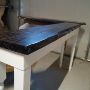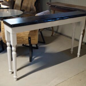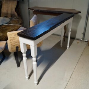 Konsola wykonana z Czarnego Dębu i podstawy drewnianej malowanej na biało, ładnie wpasuje się do salonu i pięknie go ozdobi. Konsola ma swój klimat nowoczesności co sprawi, że na pewno przyciągnie uwagę a z różnymi ozdobami znajdującymi się na nim wszystko dobrze będzie się prezentowało.