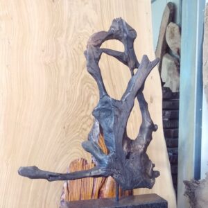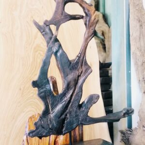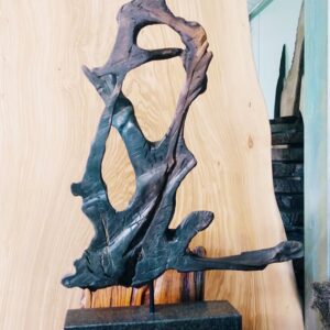 Rzeźba ma swój unikatowy styl dzięki czemu może się wkomponować w ustrój domu jak i tarasu. Ma ona połączenie stylu nowoczesnego ze stylem starym co powoduje, że wszystko dobrze ze sobą się zgrywa. Na pewno przypadnie do gustu dla wielbicieli niestandardowych dekoracji w swoim domu. Wykonany jest z dębu bagiennego, który ma zwiększoną gęstość, dzięki czemu jest twardszy. Granit jest odporny na ścieranie się, zarysowania lub pęknięcia.