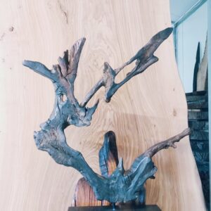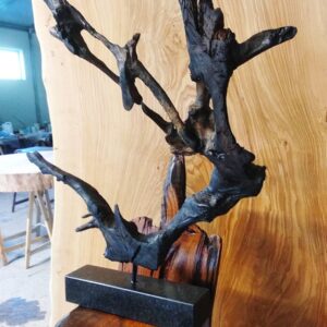 Rzeźba ma swój unikatowy styl dzięki czemu może się wkomponować w ustrój domu jak i tarasu. Ma ona połączenie stylu nowoczesnego ze stylem starym co powoduje, że wszystko dobrze ze sobą się zgrywa. Na pewno przypadnie do gustu dla wielbicieli niestandardowych dekoracji w swoim domu. Wykonany jest z dębu bagiennego, który ma zwiększoną gęstość, dzięki czemu jest twardszy. Granit jest odporny na ścieranie się, zarysowania lub pęknięcia.