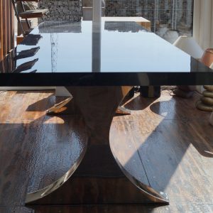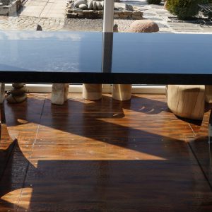 Stół Spiek Kwarcowy „Nero Greco” , Nogi Stal Chromowana.
