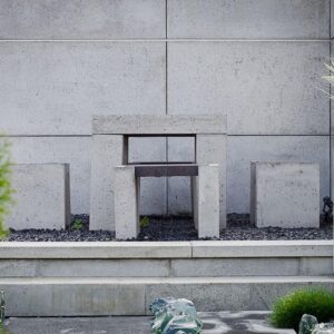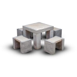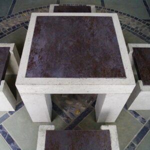 Stolik, który idealnie nadawałby się na taras. Jest bardzo dobrze i starannie wykonany a przy kamiennych ozdobach nada fajnego klimatu miejscu. Wykonany z betonu architektonicznego, który odpowiednio zaimpregnowany jest odporny na zarysowania, działania wody jak i są odporne na ścieranie się. Natomiast spiek kwarcowy jest bardzo wytrzymały i odporny na uszkodzenia mechaniczne.