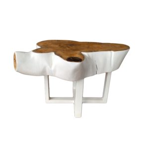 Stolik kawowy wykonany z litego Wiązu w połączeniu z nogami ze stali w kolorze białym.