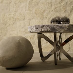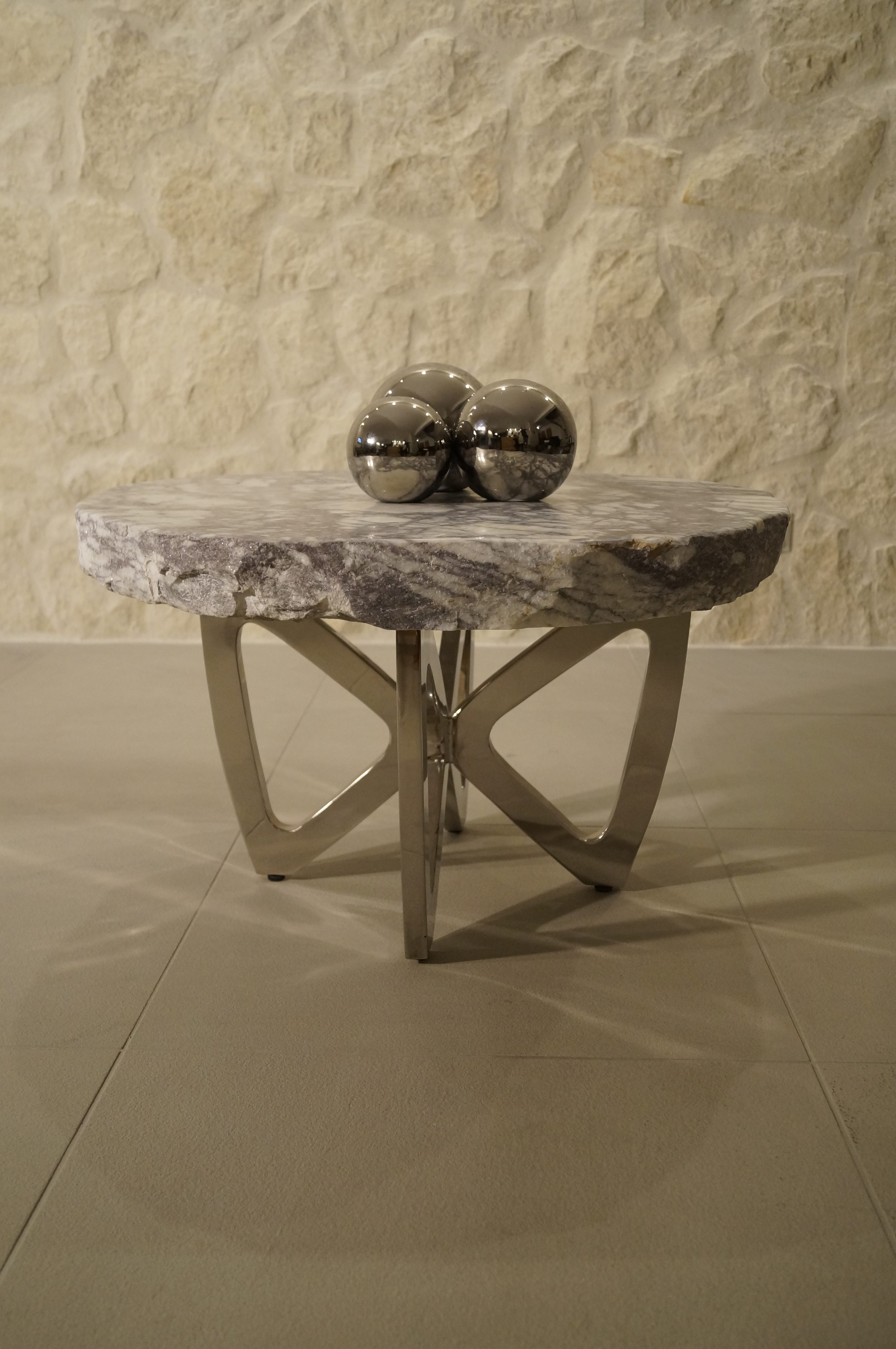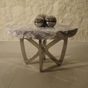 Stolik Kawowy Marmur Podstawa ze Stali Chromowanej